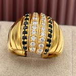 Sortija fabricada en oro de 18k formada por cuatro carriles de circonitas, dos negros y dos blancos. Disponible en talla 14. Consúltanos para más tallas y tiempos de entrega.