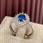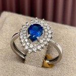 Sortija fabricada en oro blanco de 18k en forma de lágrima con una piedra en el centro color zafiro rodeada por pequeñas y brillantes circonitas color blanco. Disponible en talla 14. Consúltanos para más tallas y tiempos de entrega.