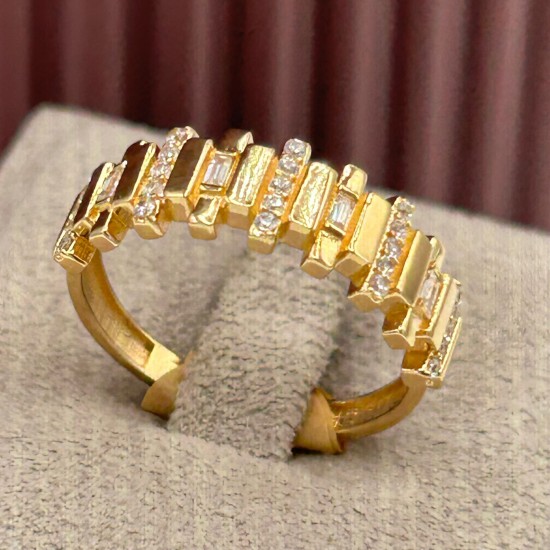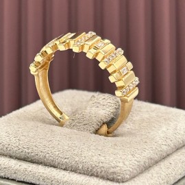 Sortija fabricada en oro de 18k con pequeñas y brillantes circonitas. Disponible en talla 16. Consúltanos para más tallas y tiempos de entrega.