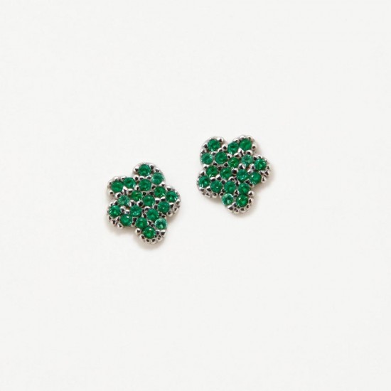 Pendientes en plata de ley con circonitas verdes. Cierre de presión. Colección starlight