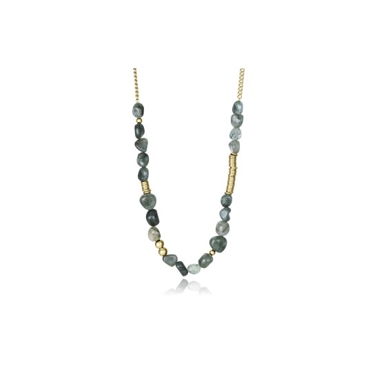Este diseño combina la sofisticación del dorado con la belleza orgánica y única del jaspe verde. Esta joya es perfecta para lucir con cualquier look, desde casual hasta formal.