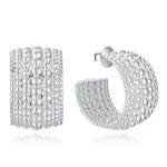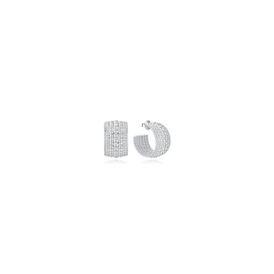 Pendientes anchos de aro abierto de acero chapado en plata 999. Son el complemento ideal para cualquier look. Forman parte de la colección de Laura Escanes, su diseño de bolas les da un toque único y elegante. Con un diámetro de 2 cm, son lo suficientemente llamativos para destacar sin perder la elegancia, perfectos para mujeres que buscan una joya versátil y con carácter.